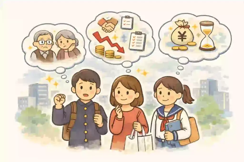 「年金不安」を、いったん中学生でも追える言葉に直すと、だいたい次の3つに分けられます。